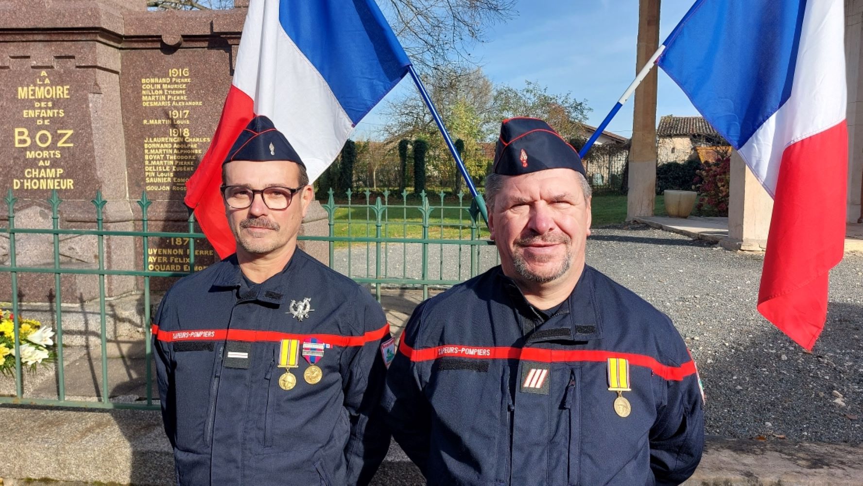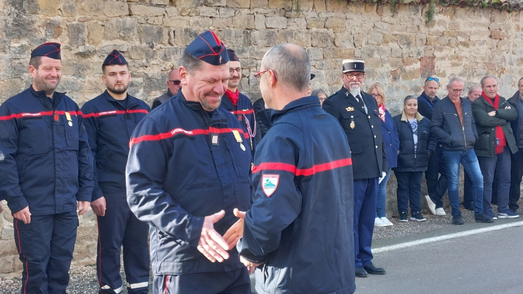 Eric Poloni a reçu des mains du capitaine honoraire, Thierry Peulet, son grade de sergent-chef. Alain Giraud, le maire de la commune, a remis à Cyrille Druesnes, son chef de corps, le grade d’adjudant-chef.