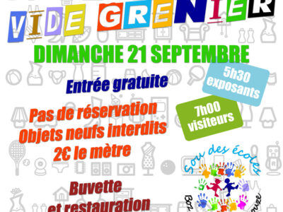 Brocante – Vide Grenier du sou des écoles – 21 septembre 2025