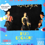 Spectacle musical avec le trio Cocagne. Il propose des musiques Folks d’Acadie, cette terre à l’Est du Canada, ancienne province Française.