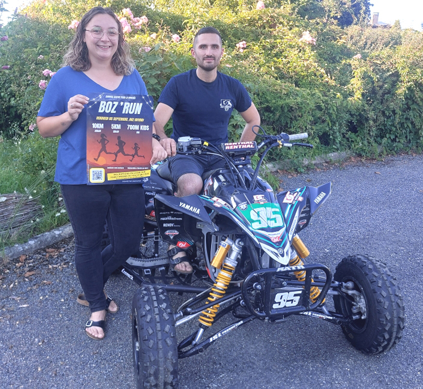 L’association « DC Racing 95 » a vu le jour fin 2024. Animée par une enfant du pays, Mélanie Fleury, fille et petite-fille d’une famille bien connue dans la commune, elle a pour but l’organisation de la saison de quad de son compagnon Hugo De Carlini. Le jeune couple réside depuis l’hiver dernier à Boz. Ils proposeront une animation inédite au village.