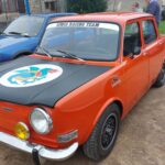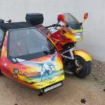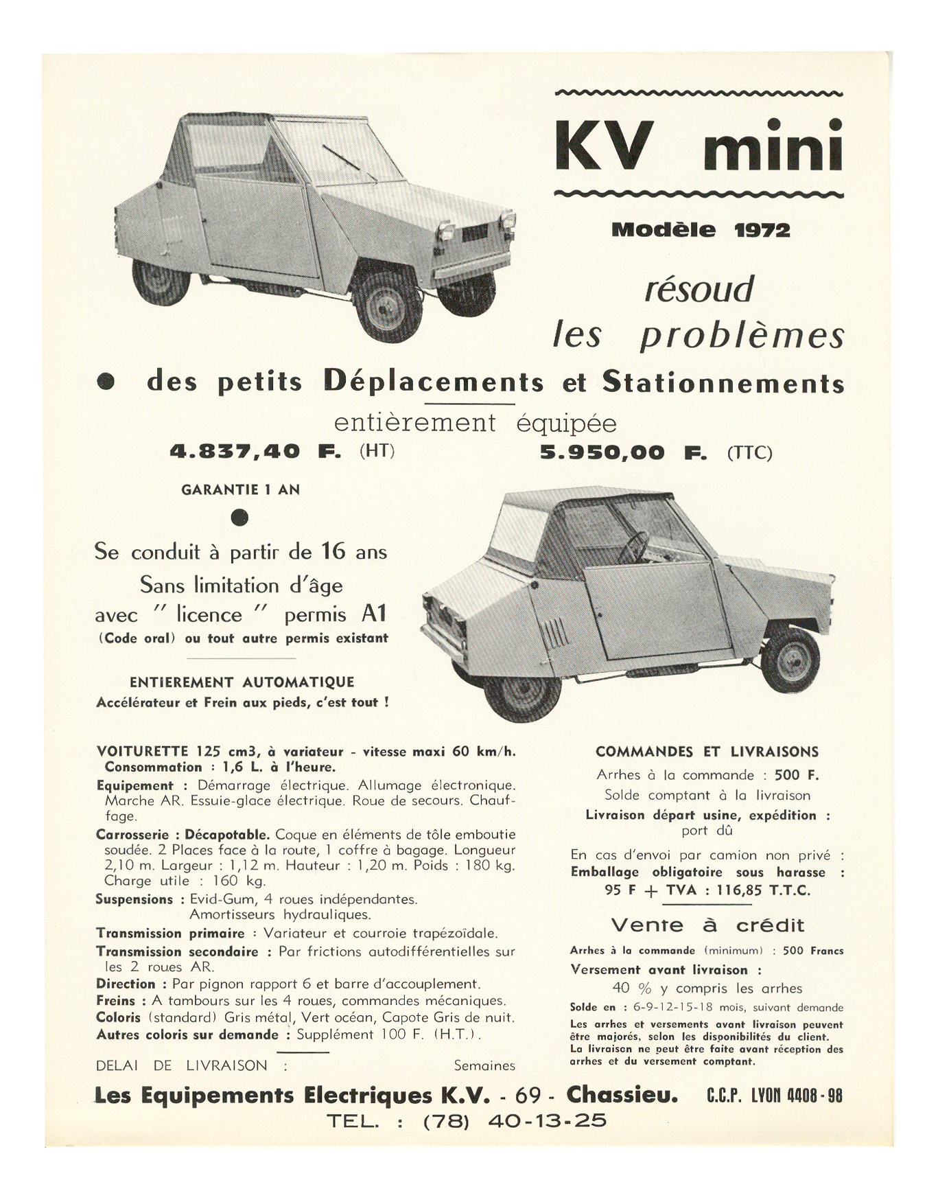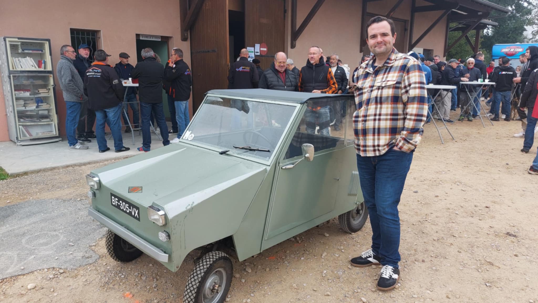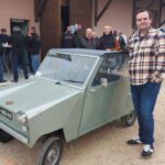 « Il s’agit d’une voiture sans permis de 1973. Elle est dotée d’un moteur 2 temps de 125 cm³. Elle était fabriquée à Chassieu, près de Lyon. On roule à 45 km/h. Dans la publicité de l’époque, on vantait ses mérites pour effectuer de petits déplacements et se garer facilement. On pouvait la conduire dès 16 ans et l’acquérir pour 5 950 francs TTC. Elle ne possède pas de vitesses. C’est un variateur. Accélérateur et freins aux pieds, c’est tout !