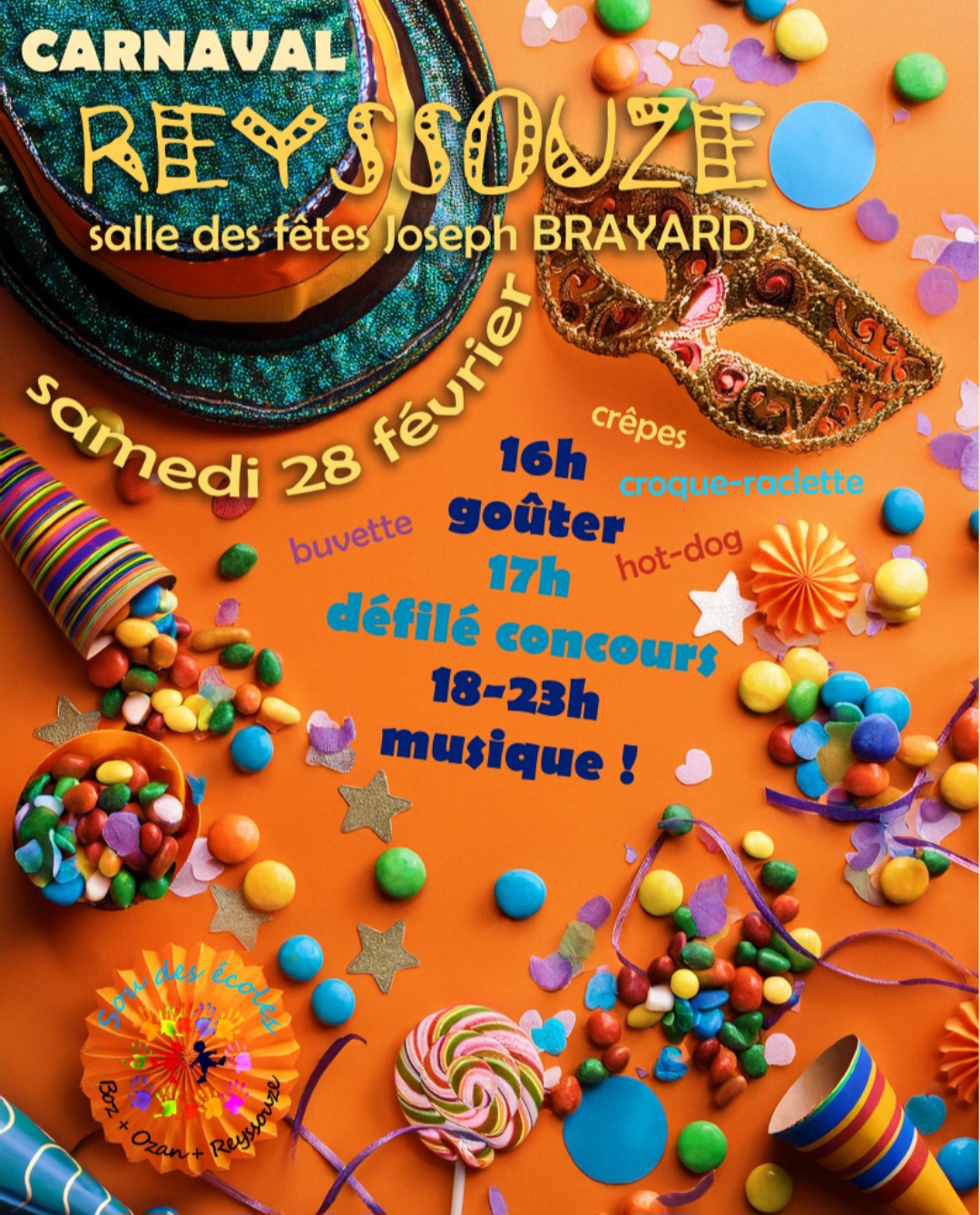 SAMEDI 28 FEVRIER à partir de 16h et jusqu’à 23h, le sou des écoles du RPI fait son carnaval.