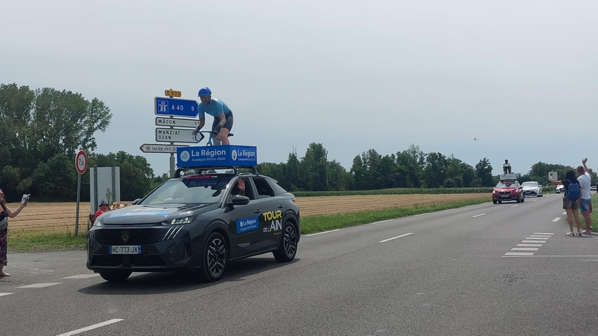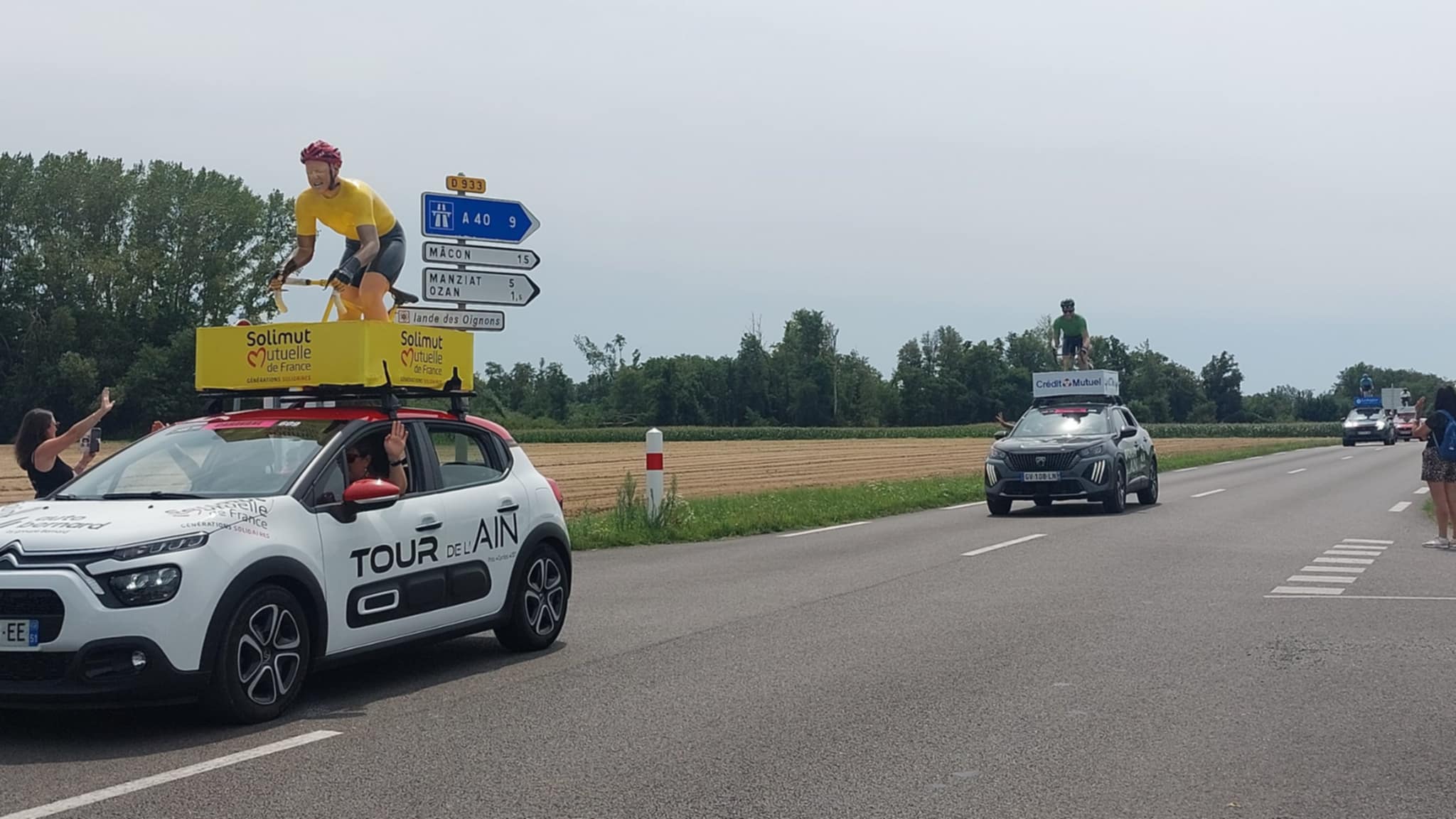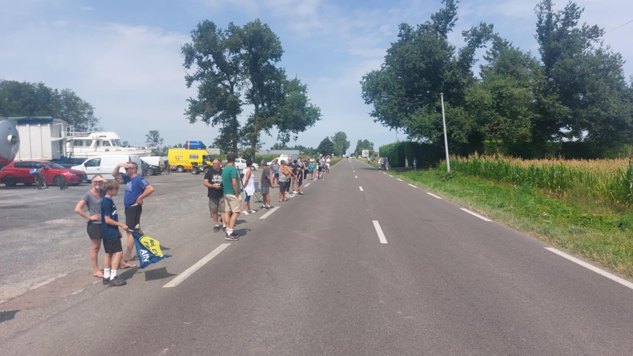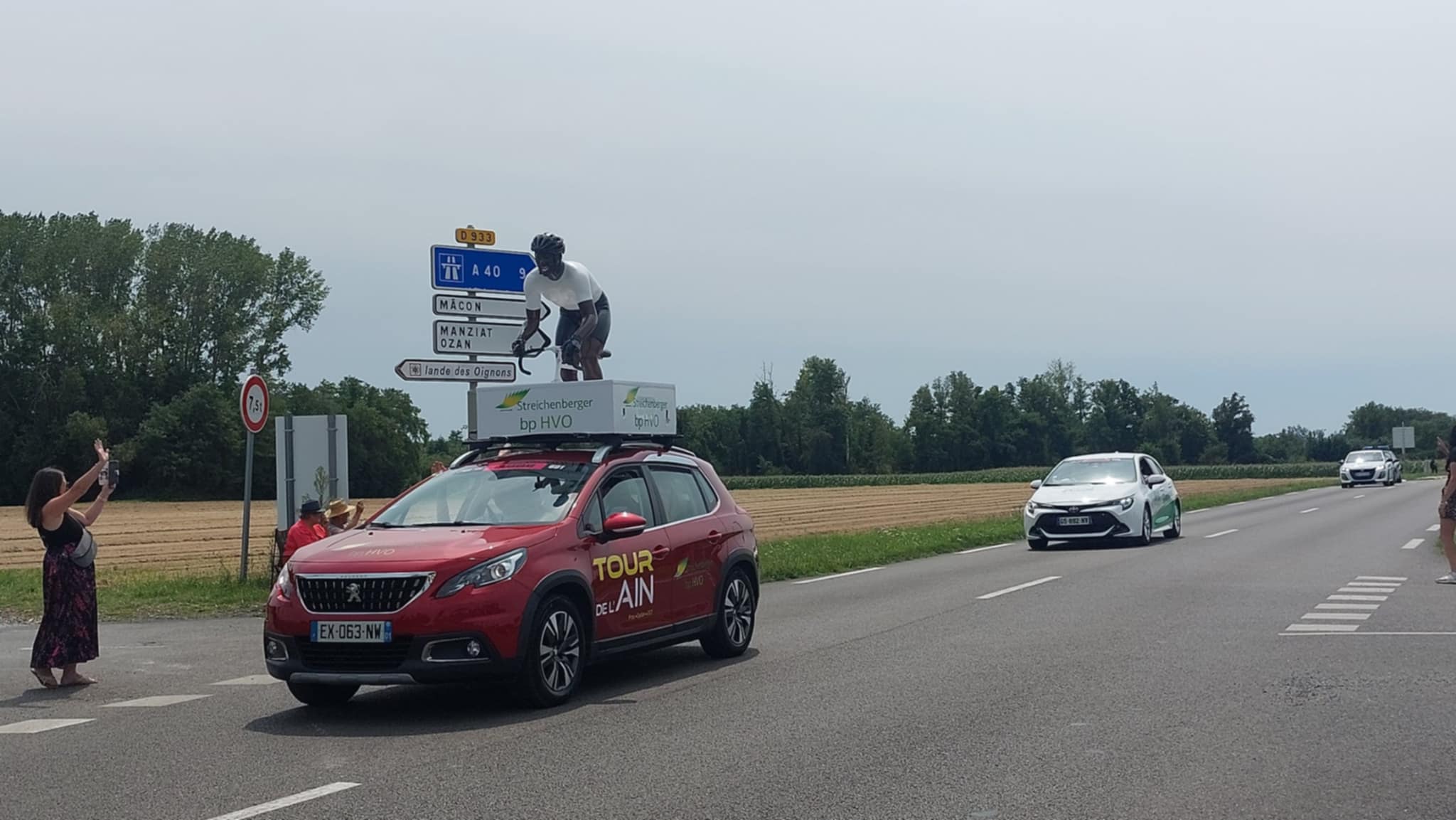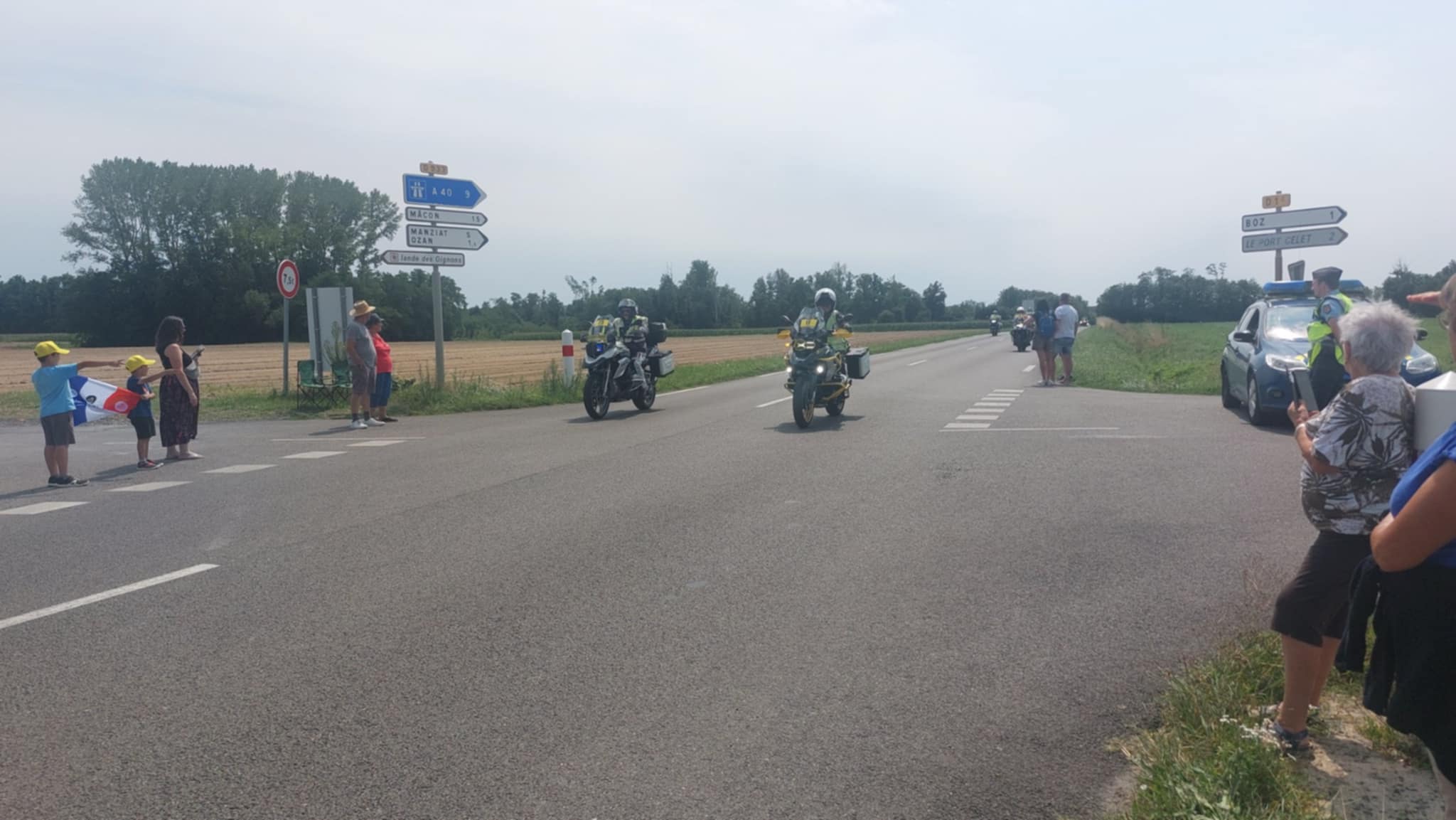 Les personnes présentes n’attendaient pas le train qui ne passe plus ici depuis longtemps, mais les coureurs et la caravane du tour de l’Ain cycliste qui s’élançaient de Feillens à 14h15.