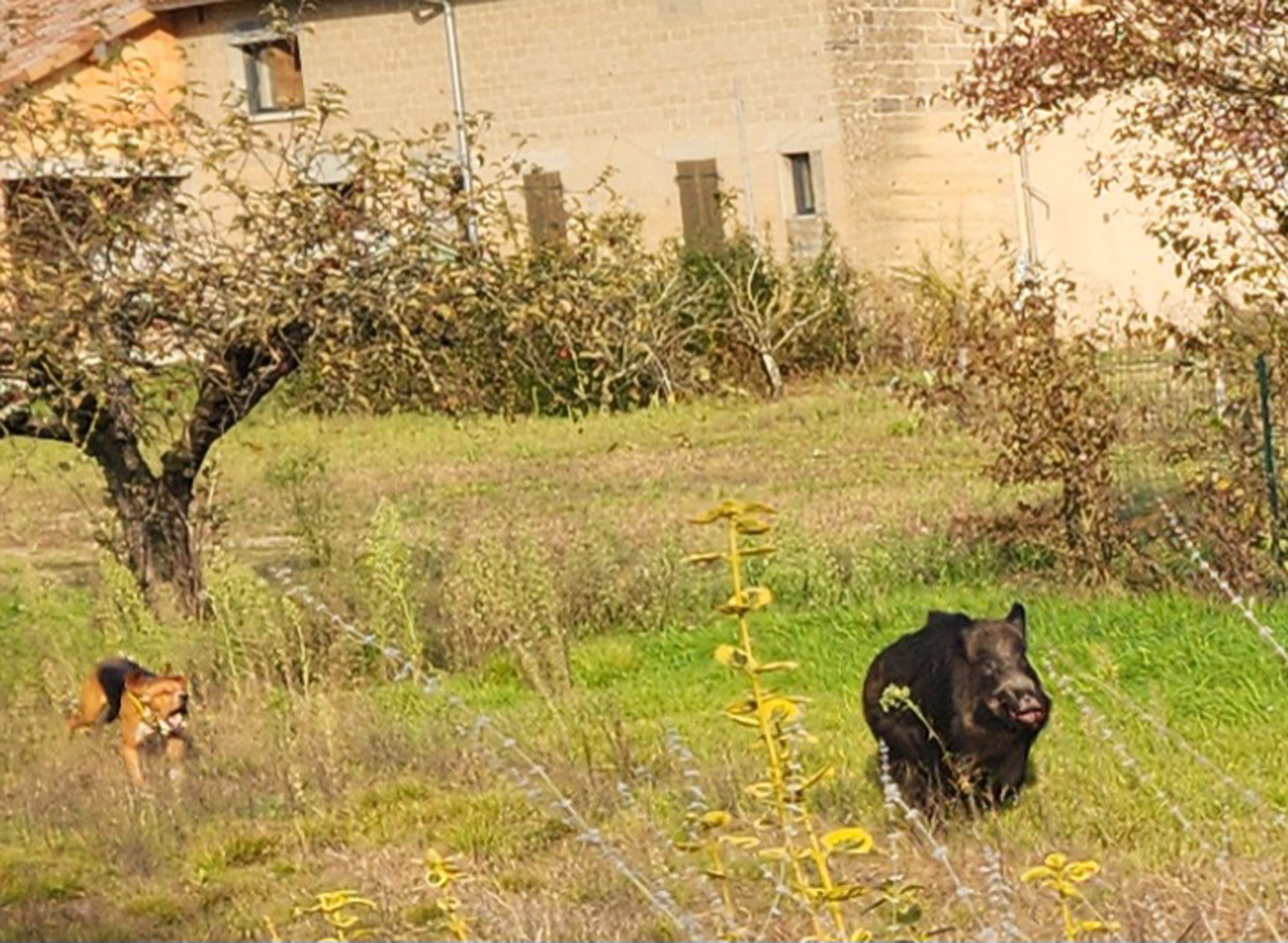 Poursuivi par les chiens des chasseurs qui étaient en battue avec leurs homologues de Reyssouze, c’est un gros sanglier qui a traversé le village en emportant tout sur son passage. Coupant par les jardins et les maisons, il s’est dirigé en direction d’Ozan où les chasseurs ont pu récupérer leurs chiens.